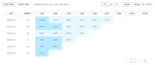 留存率是验证用户粘性的关键指标,设计师和产品经理通常可以利用留存率与竞品对标,衡量用户的粘性和忠诚度。通常重点关注次日、3日、7日、30日即可,并观察留存率的衰减程度。留存率跟应用的类型也有很大关系。通常来说,工具类应用的首月留存率可能普遍比游戏类的首月留存率要高。